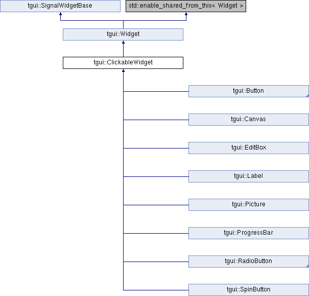 tgui::Widget tgui::SignalWidgetBase tgui::Button tgui::Canvas tgui::EditBox tgui::Label tgui::Picture tgui::ProgressBar tgui::RadioButton tgui::SpinButton